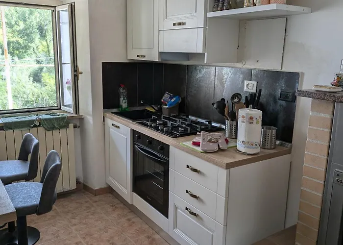 The 1-bedroom holiday home is a 30-minute drive from L'Aquila, and the Waterfall of the Golden Calf is 25 minutes' walk away.